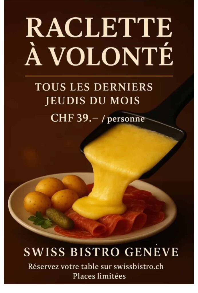 Depuis 2006, le Swiss Bistro est implanté entre les hôtels Suites Novotel et Ibis Budget dans la commune de Cointrin, juste en face du très connu centre commercial de Balexert. Nous sommes réputés pour faire découvrir ou redécouvrir les plats typiquement suisses tels que la raclette, la fondue, les röstis typiques de tous nos cantons ou encore l’incontournable dessert : les meringues à la double crème. Notre restaurant vous accueille dans un cadre chaleureux et authentique, idéal pour savourer les délices de la cuisine suisse traditionnelle.